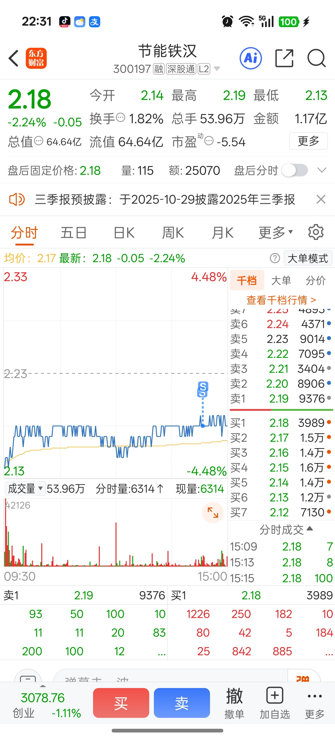 $节能铁汉(SZ300197)$ 下午清仓了,不再见