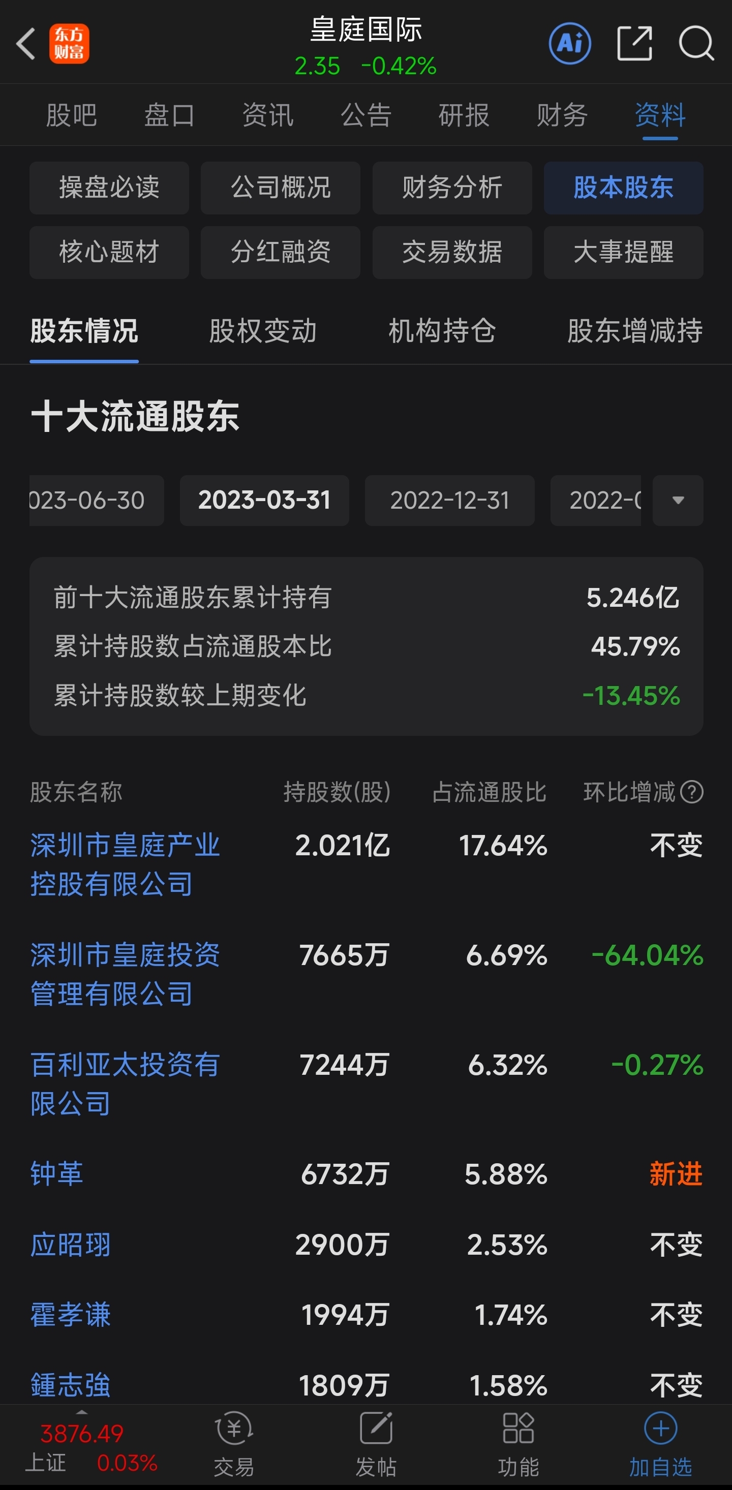 $节能铁汉(SZ300197)$ 皇庭国际,当时也是钟革法拍的,后面翻倍就卖了
