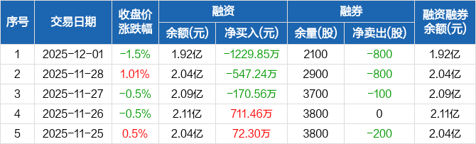 节能铁汉:融资余额1.92亿元,创近一年新低(12-01)