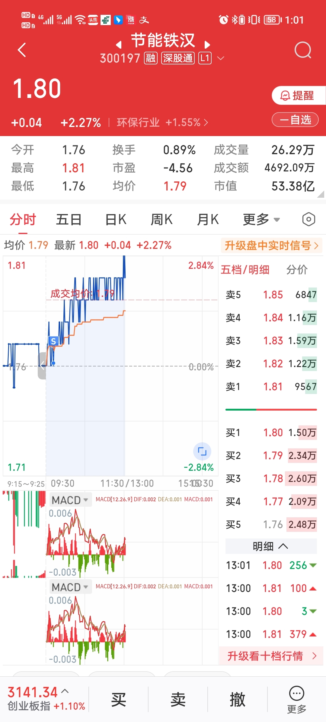 $节能铁汉(SZ300197)$ 卖了,怕退市,结果起飞