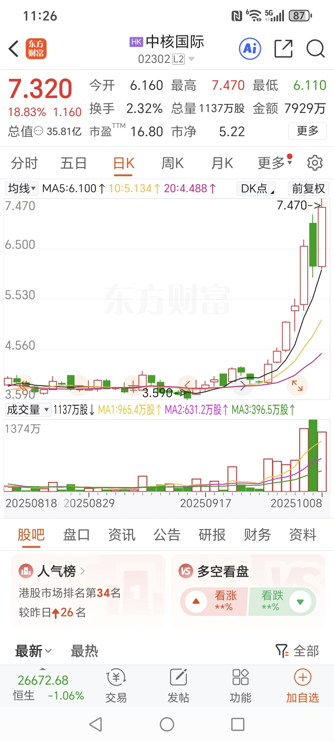 今天港股核电板块继续大涨,不知道纳川明天会不会跟进?