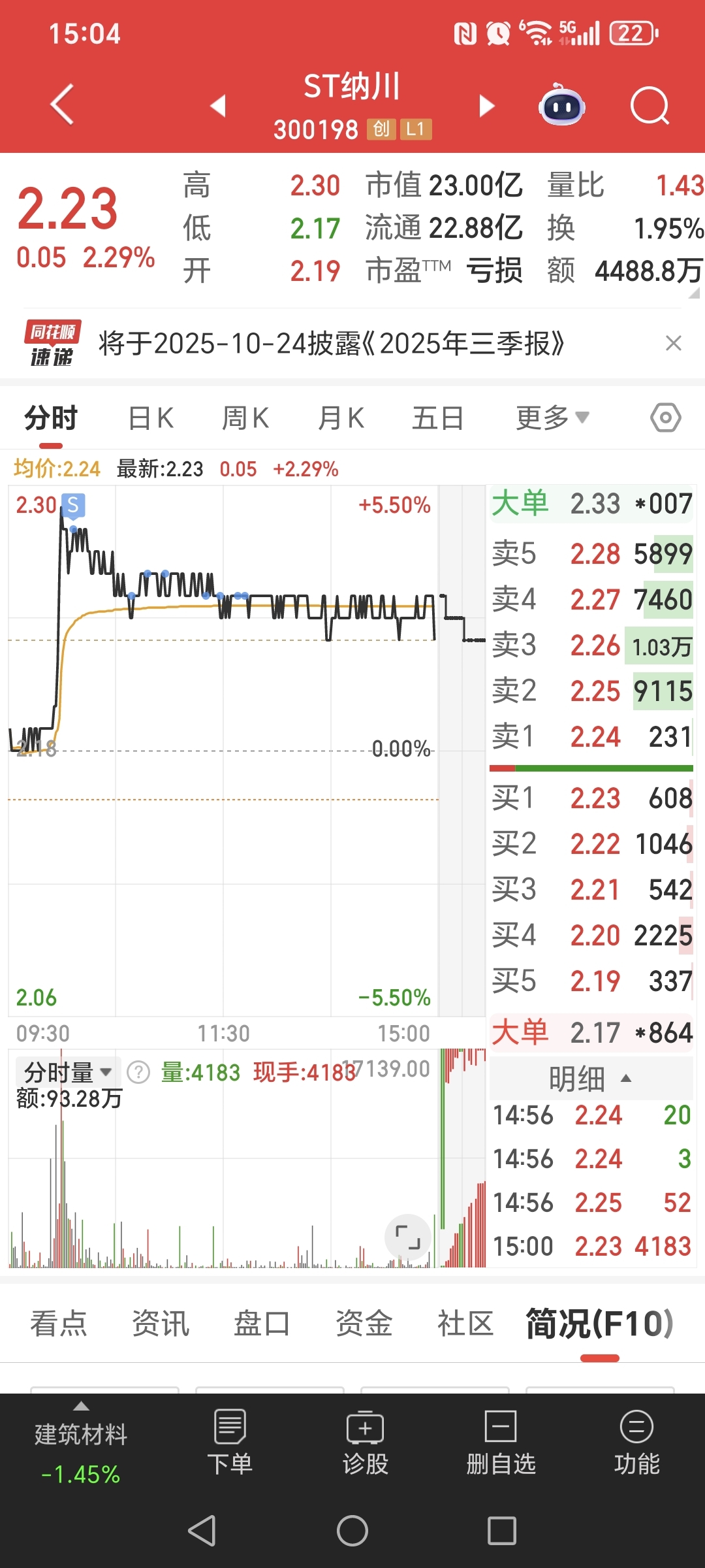 $ST纳川(SZ300198)$ 上午卖了纳川和云汉,下午买了新研,笑兮兮。
