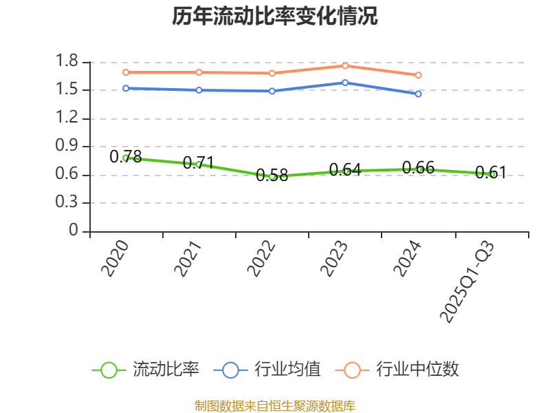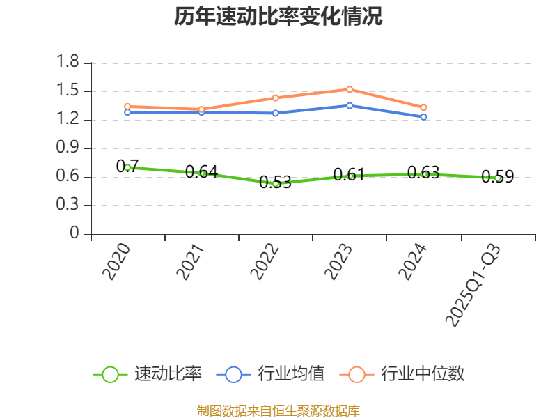 2025年前三季度,公司流动比率为0.61,速动比率为0.59。