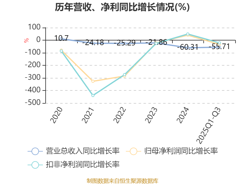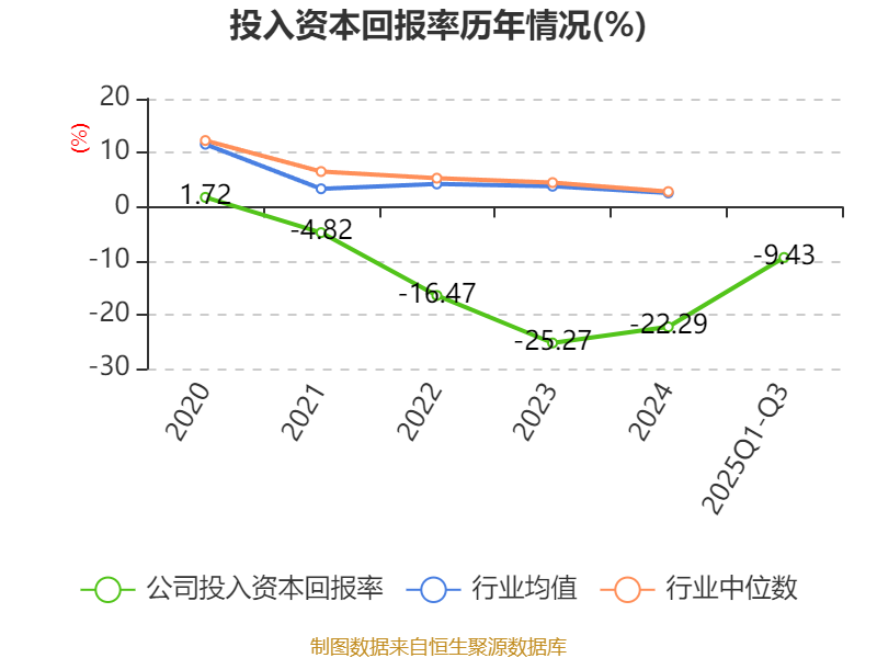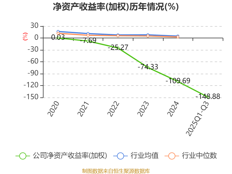 盈利能力方面, 2025年前三季度公司加权平均净资产收益率为-148.88%,同比下降128.19个百分点。公司2025年前三季度投入资本回报率为-9.43%,较上年同期下降3.21个百分点。