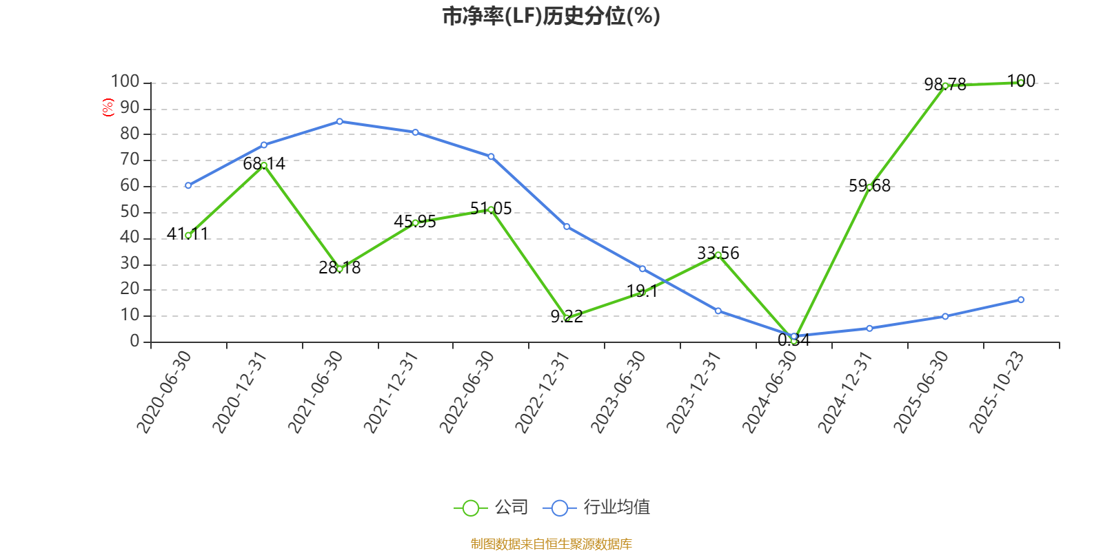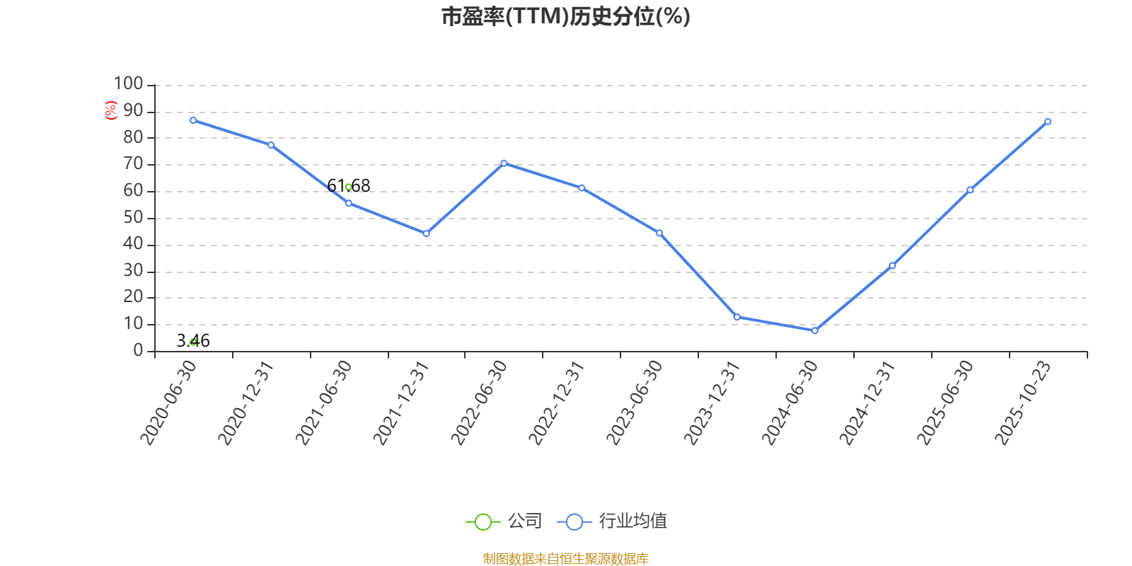 市盈率、市净率为负时,不显示当期分位数,会导致折线图中断。
