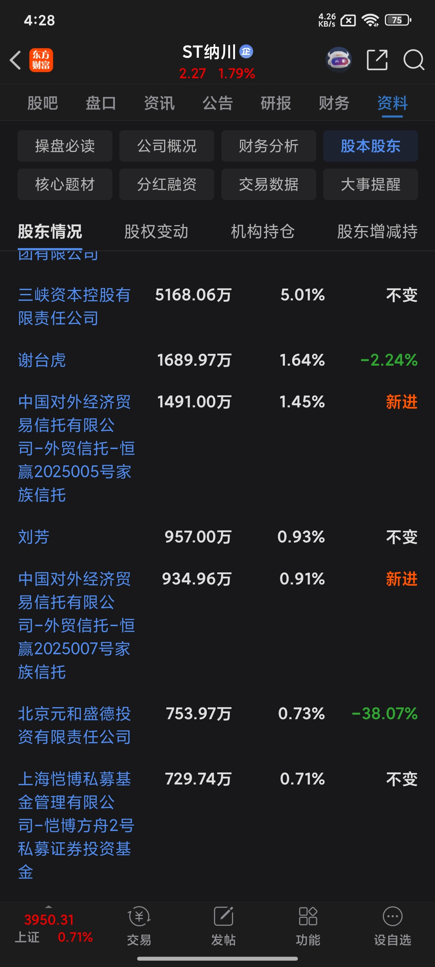 $ST纳川(SZ300198)$ 看到没,家族信托。接盘的老板是准备把纳川股票留给子孙后代的。由此可以推断出纳川,后续必有大动作。