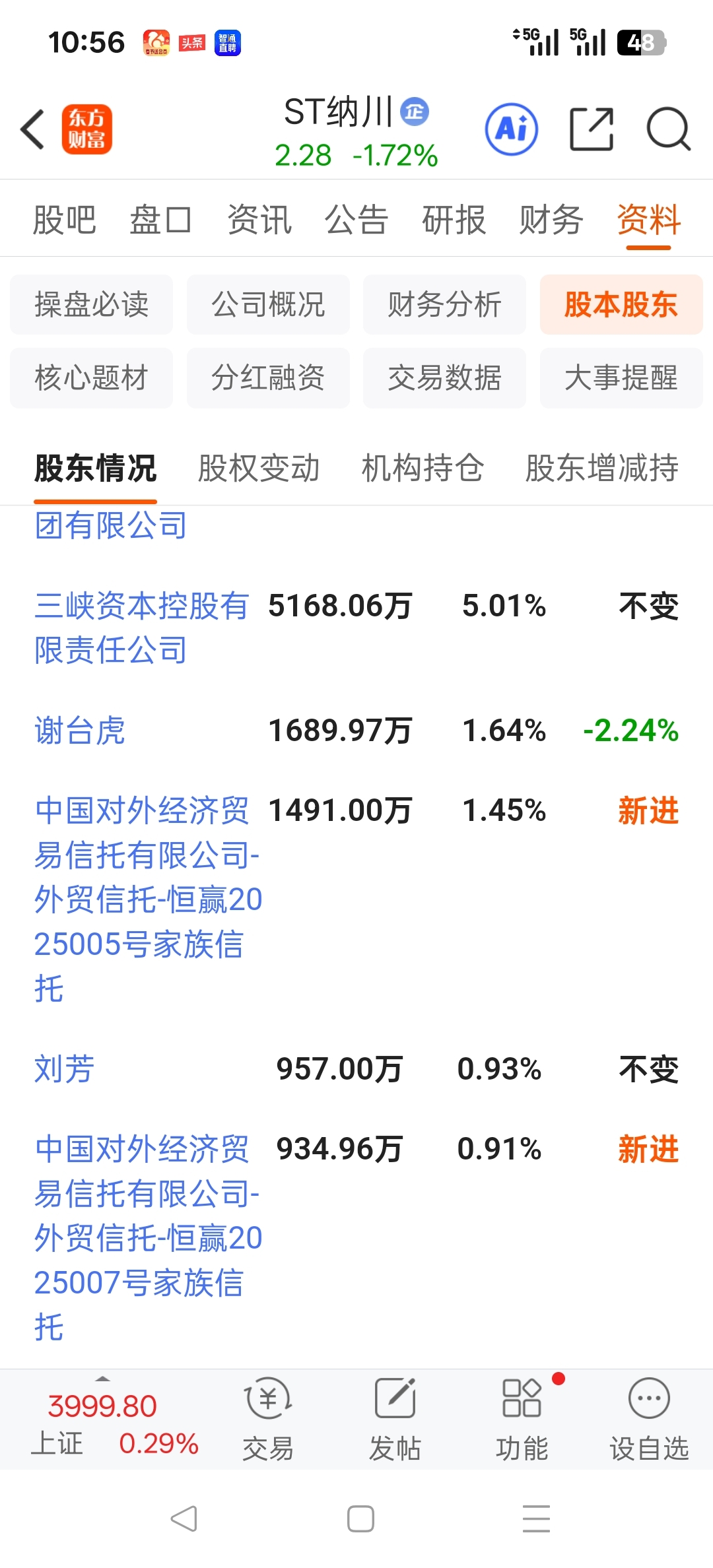 $ST纳川(SZ300198)$ 两信托是不是想搞重整了,吃了不少货