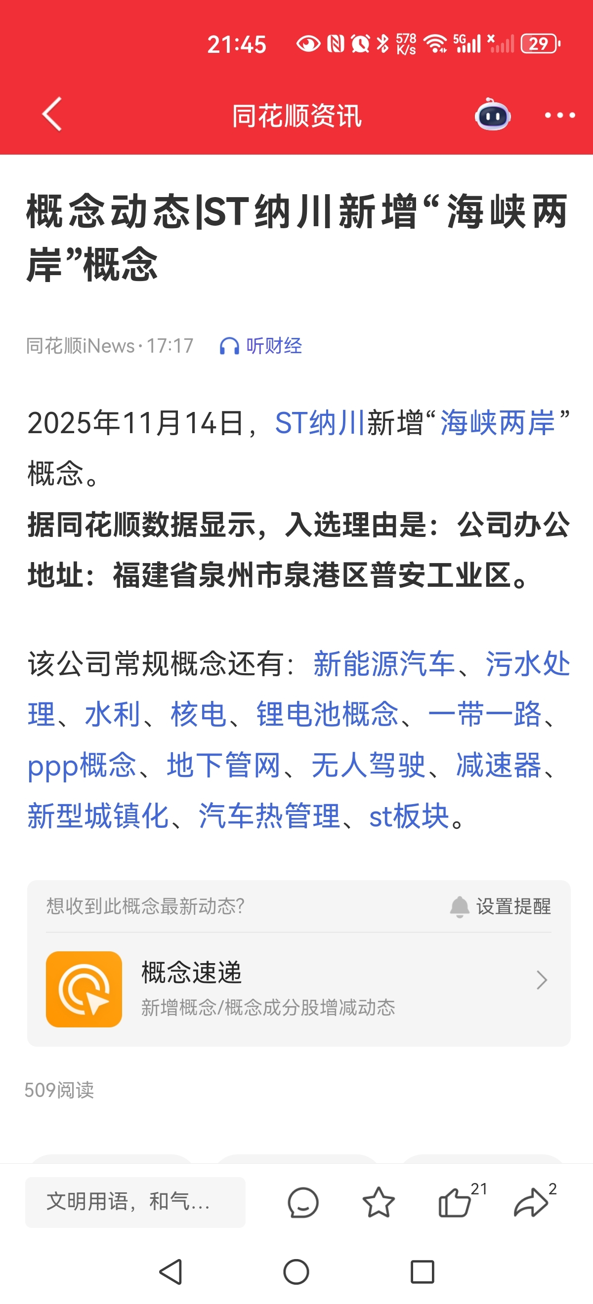 $ST纳川(SZ300198)$ 海峡两岸概念来了