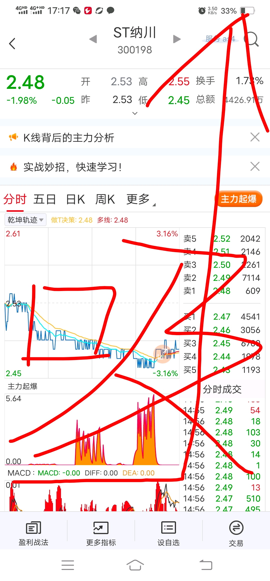 $ST纳川(SZ300198)$ 重大消息,大家好我又回来看看主力了,前段时间赚了一点出去买了航天卫星又赚了一点点。今天晚上有看到纳川回调大量吸筹了,看样子明天或是后天再回调又是建仓机会,或是全仓等着过年大利好。