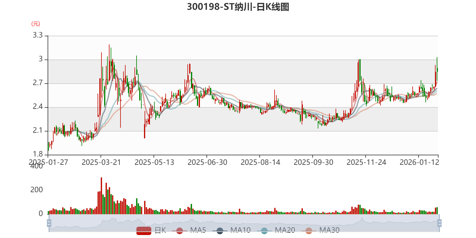 中证智能财讯 ST纳川(300198)1月27日晚间披露2025年度业绩预告,预计2025年实现营业收入7000万元至8000万元;归母净利润亏损2.45亿元至3.05亿元,上年同期亏损3.07亿元;扣非净利润亏损1.65亿元至2.25亿元,上年同期亏损2.65亿元。以最新收盘价计算,市净率(LF)约158.89倍,市销率(TTM)约39.2倍。