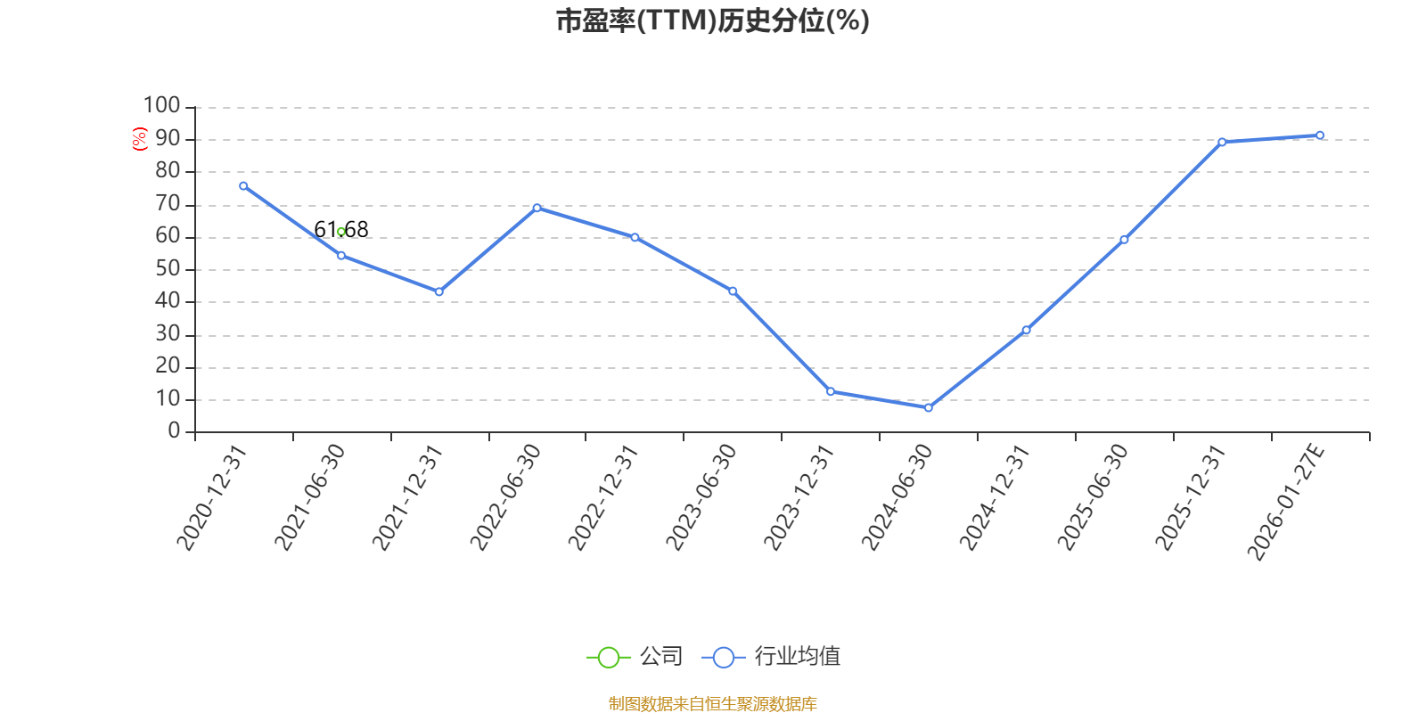 以本次披露业绩预告均值计算,公司近年市盈率(TTM)图如下所示: