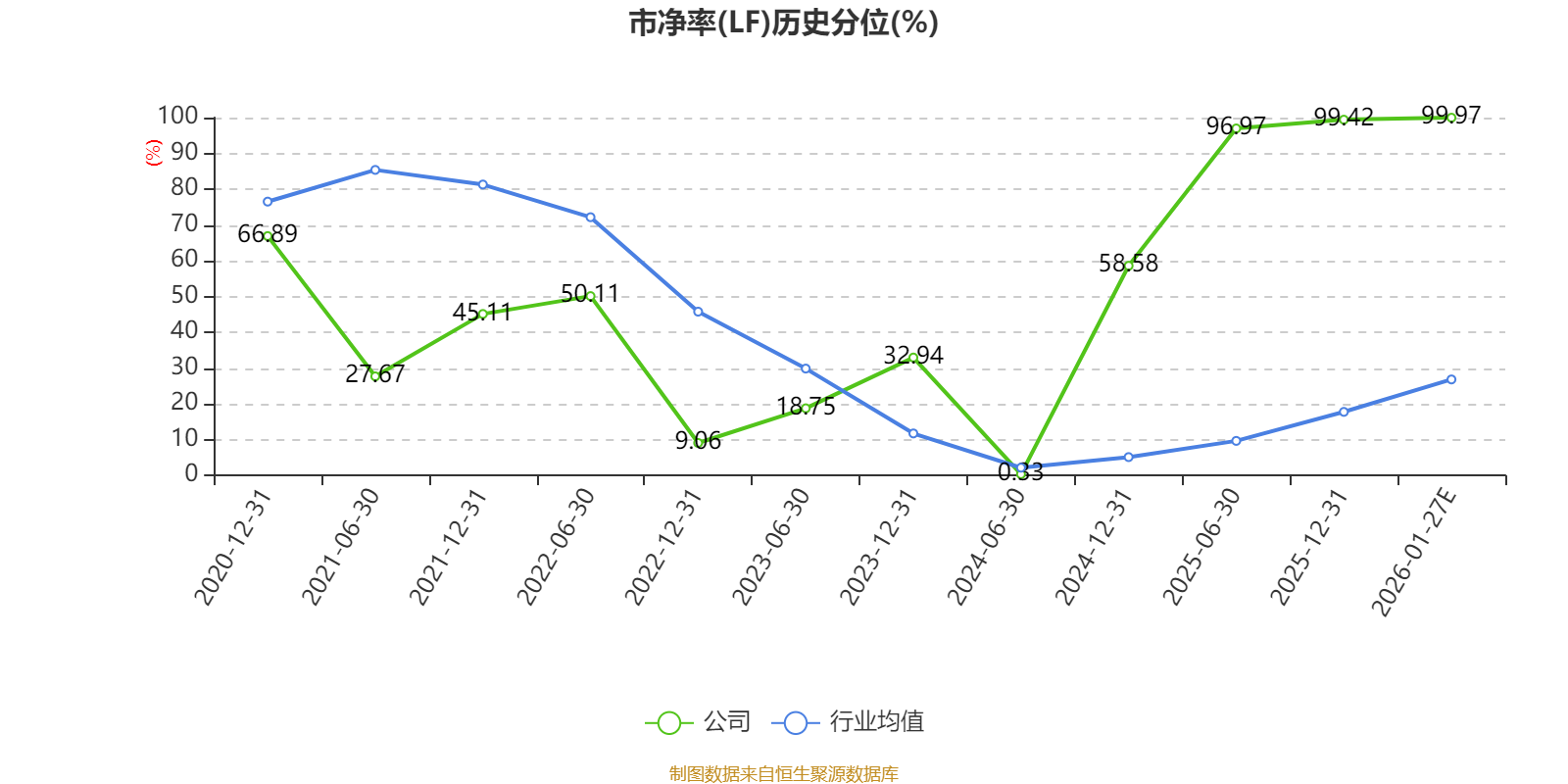市盈率、市净率为负时,不显示当期分位数,会导致折线图中断。