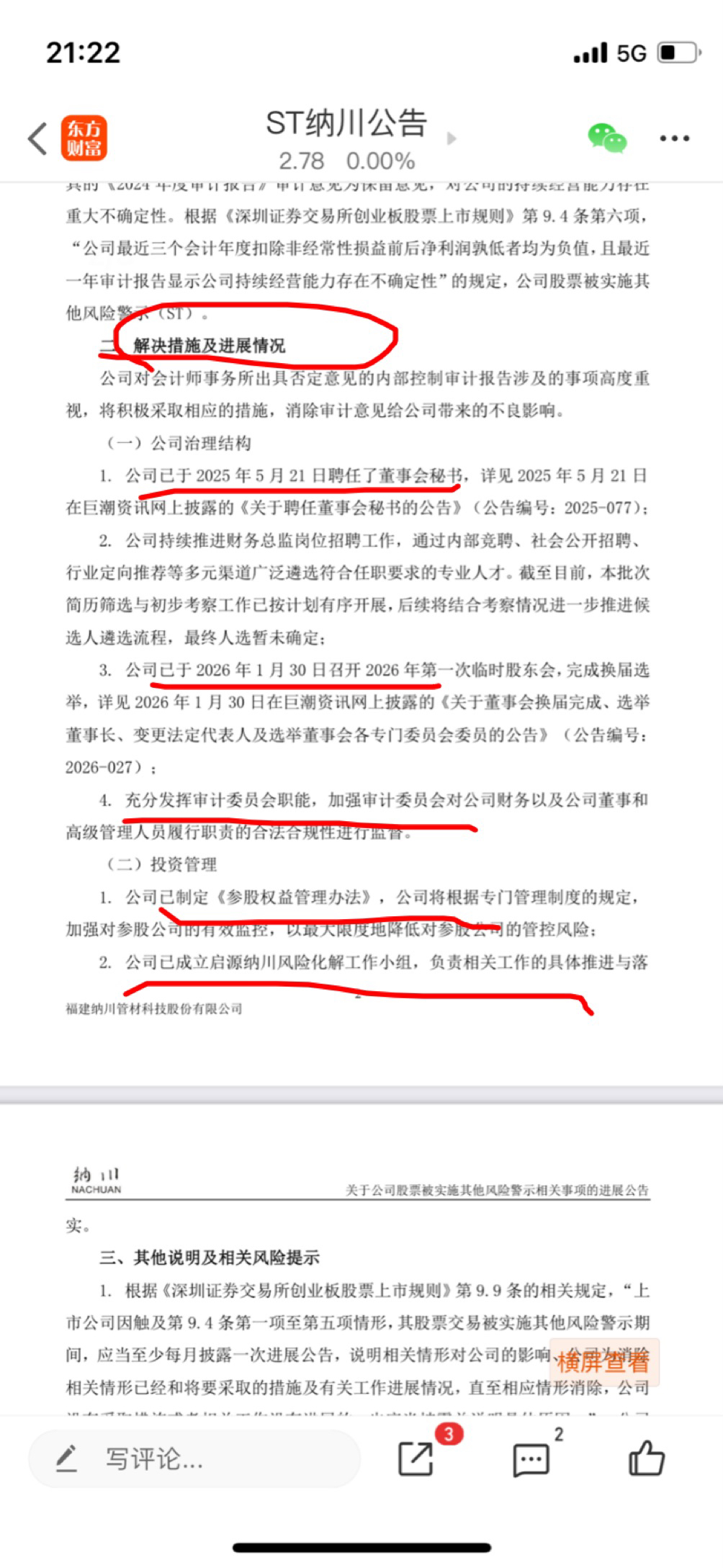 $ST纳川(SZ300198)$ 一堆人以为月经贴没啥用,但是从这里可以看到之前遗留问题的解决措施,这就是进展,这就是公司行动