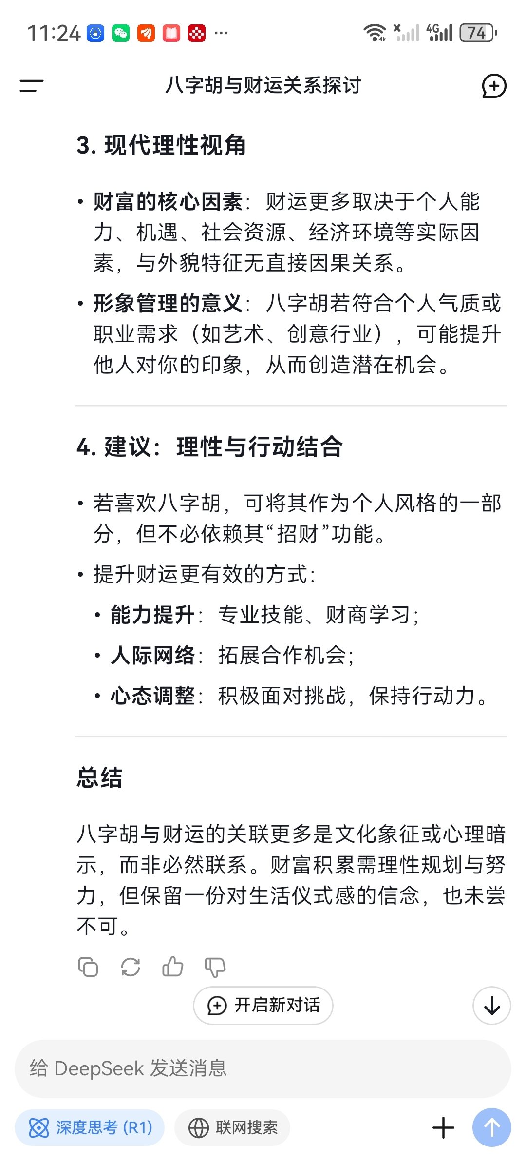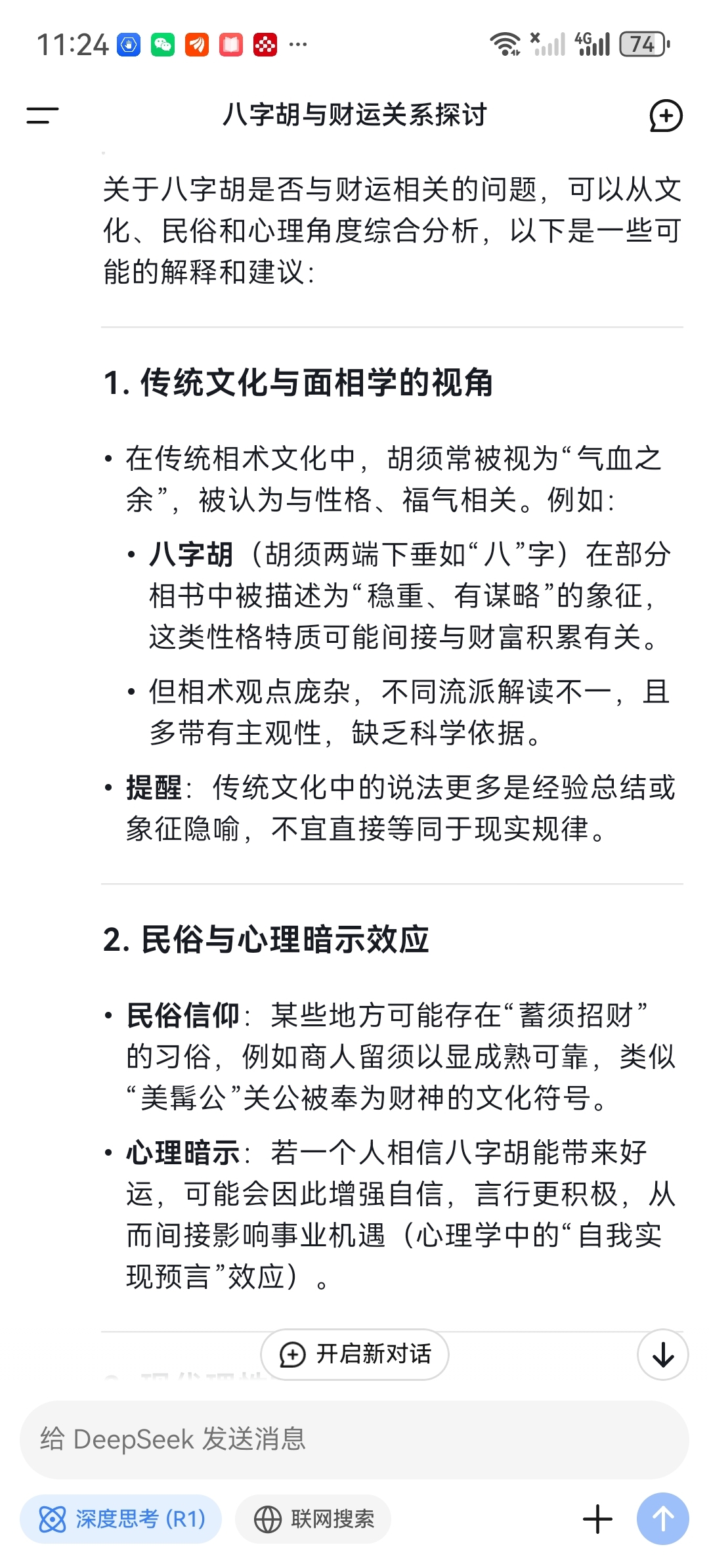 曾总喜欢留八字胡,大家都表示不好看,我问了一下Deepseek,看看它怎么讲?
