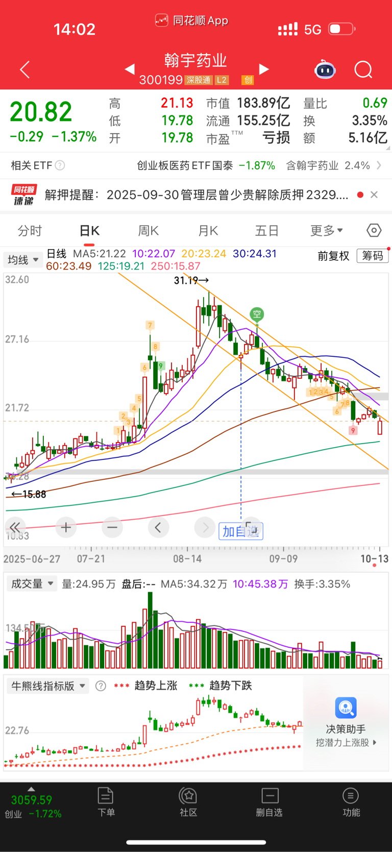 $翰宇药业(SZ300199)$ 一直在下降通道中,怎么可能反转,死了这条心吧。7.1号缺口必补,还得下杀几块钱才可以。如果通过定增,均价15,定增12块,然后冲40。哈哈哈