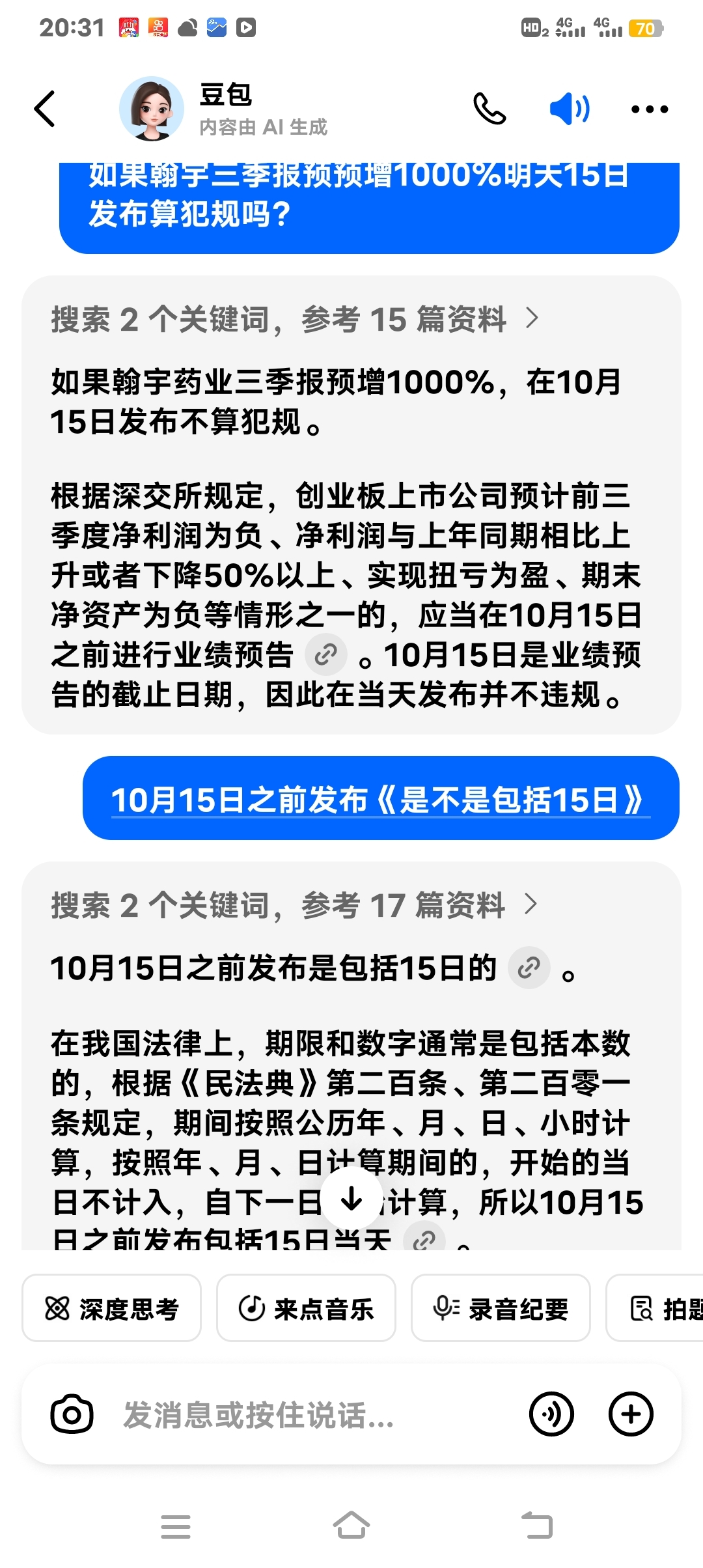 $翰宇药业(SZ300199)$  如果翰宇三季报预增50%以上,发布日子明天《15日》还有一天时间