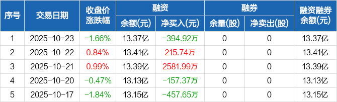 翰宇药业:融资净偿还394.92万元,融资余额13.37亿元(10-23)