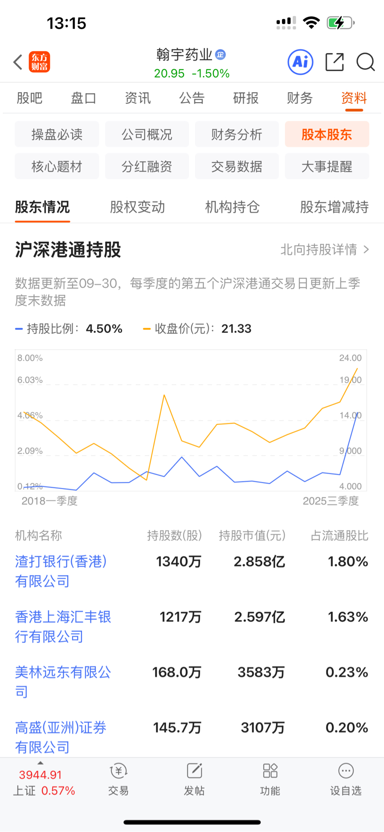 $翰宇药业(SZ300199)$ 最近可能是北上资金一直在减持,3季报季报还持有2800万股呢