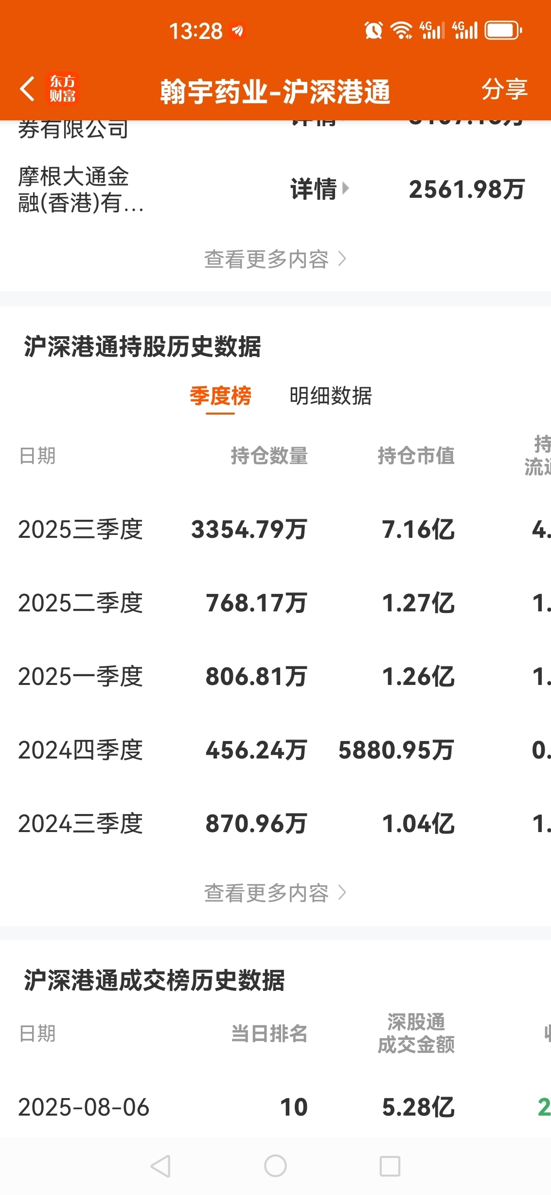 $翰宇药业(SZ300199)$  错!北向增加到了3354.79万股