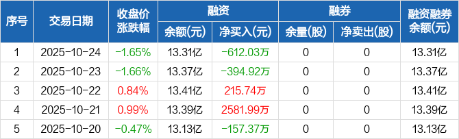 翰宇药业:融资净偿还612.03万元,融资余额13.31亿元(10-24)