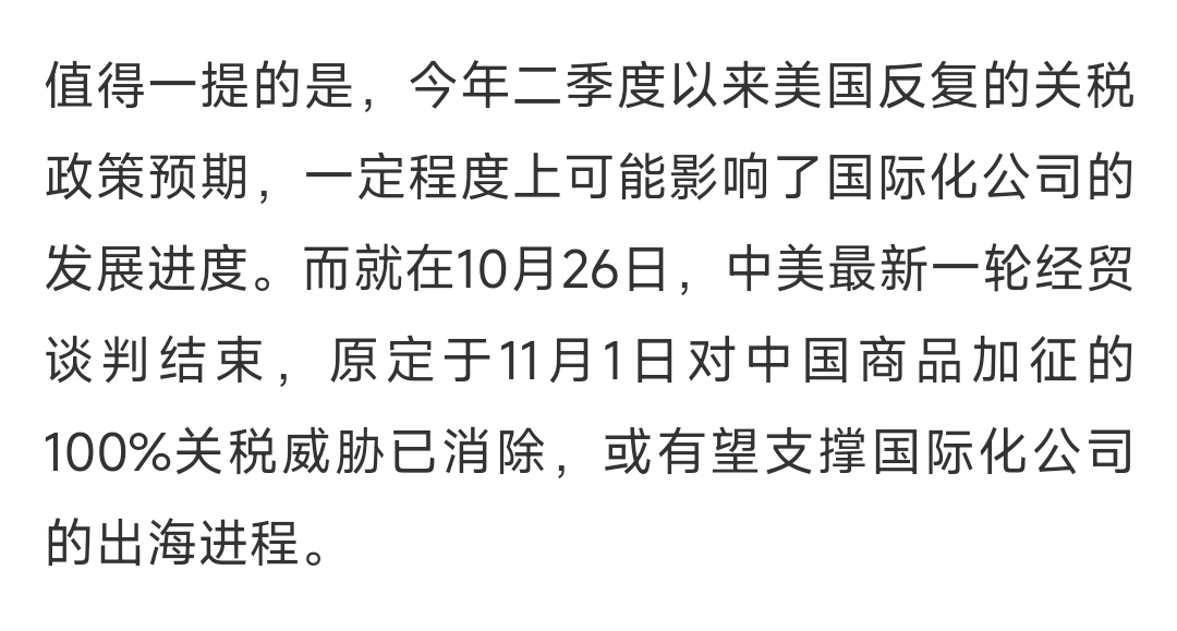 第三季度营收少是预期内的啊,关税战确实影响了,总的来说不算很差,后面持续看好4季