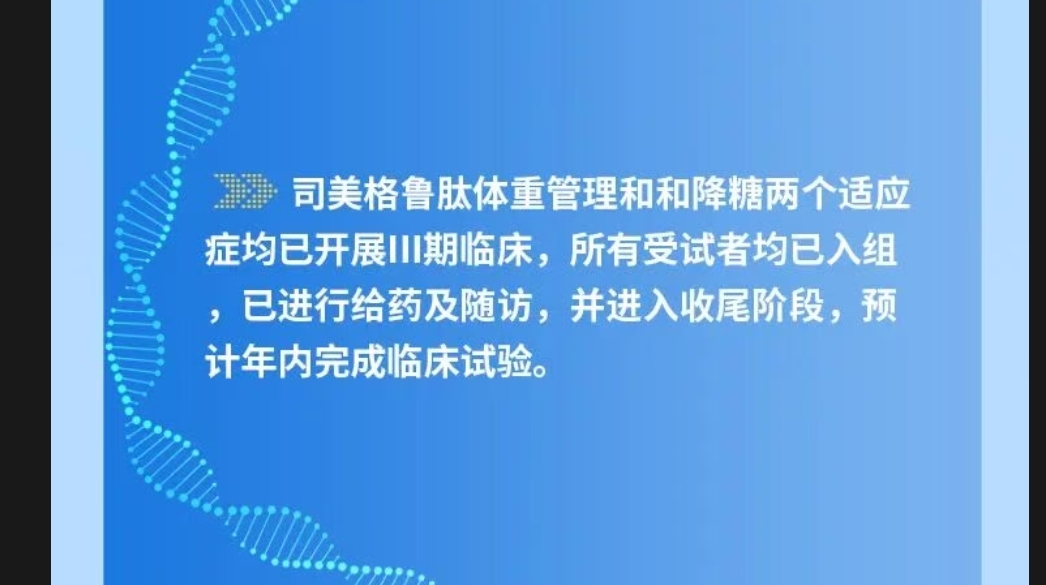 官网发布的,年内完成减重和血糖司美格鲁肽的临床研究