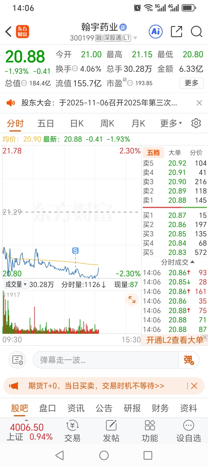 $翰宇药业(SZ300199)$ 割了的,莫又像昨天一样冲高,又去追高