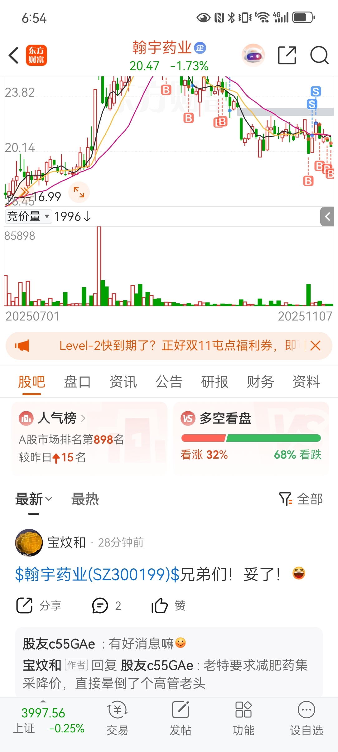 $翰宇药业(SZ300199)$ 叨股天天下跌,搞的我天加仓,什么时候是个头,没玩没了了
