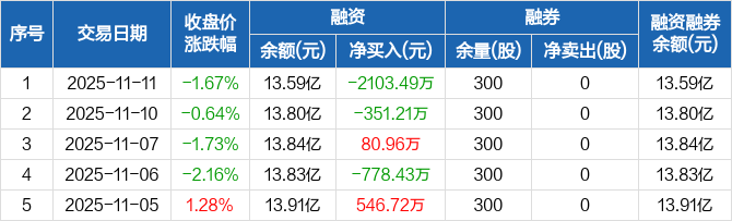 翰宇药业:融资净偿还2103.49万元,融资余额13.59亿元(11-11)