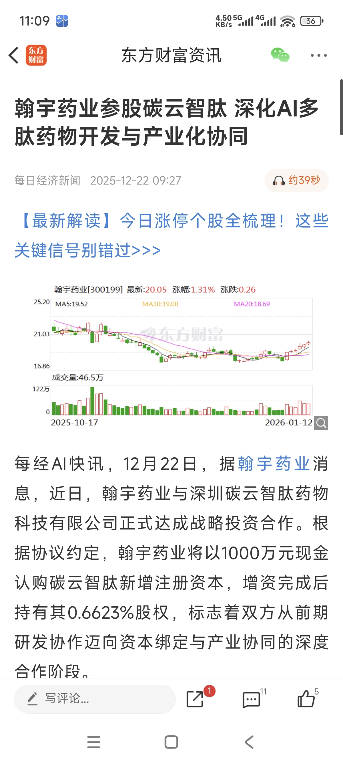 $翰宇药业(SZ300199)$ 只能说生不逢时,如果放在现在爆炒AI应用的风口上, AI医药这个赛道,能飞起来。