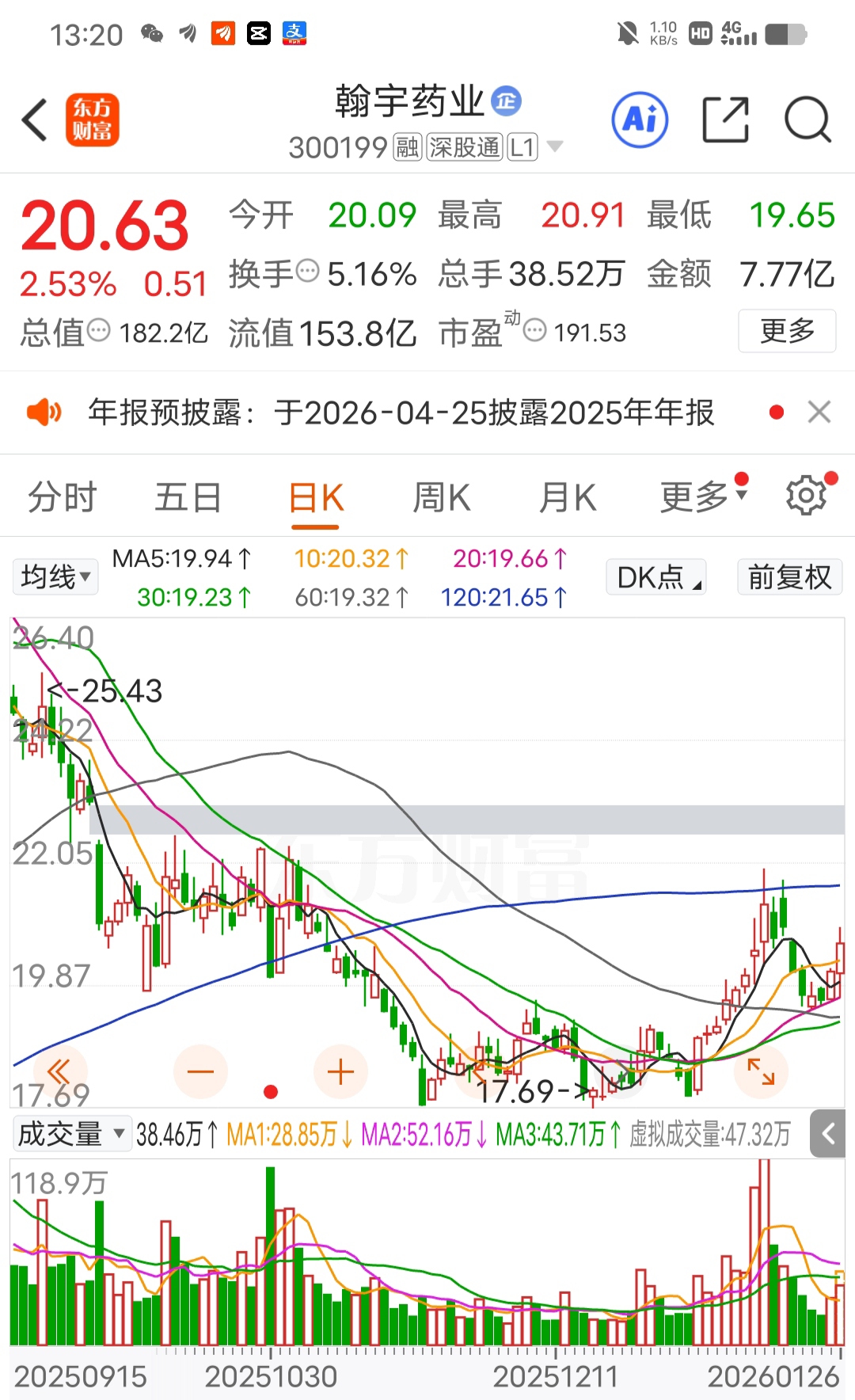 $翰宇药业(SZ300199)$ 今日股价低开震荡,在午后量能的递增之后股价扭转局势形成了上涨趋势,短期股价只要突破上方压力位21.65元,大家都可以等到获利机会的到来,在没有获利之前还是先耐心等待吧,我坚信股价会出现在22元之上,只是需要时间去磨练。