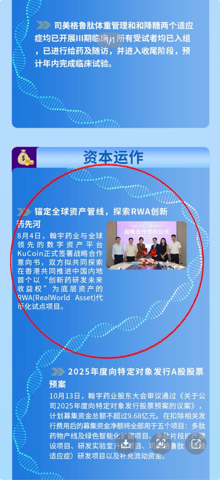 $翰宇药业(SZ300199)$ 中午看了下2025年回顾,RWA题都没提,3季度回顾还有截图,这情况是不是泡汤了?
