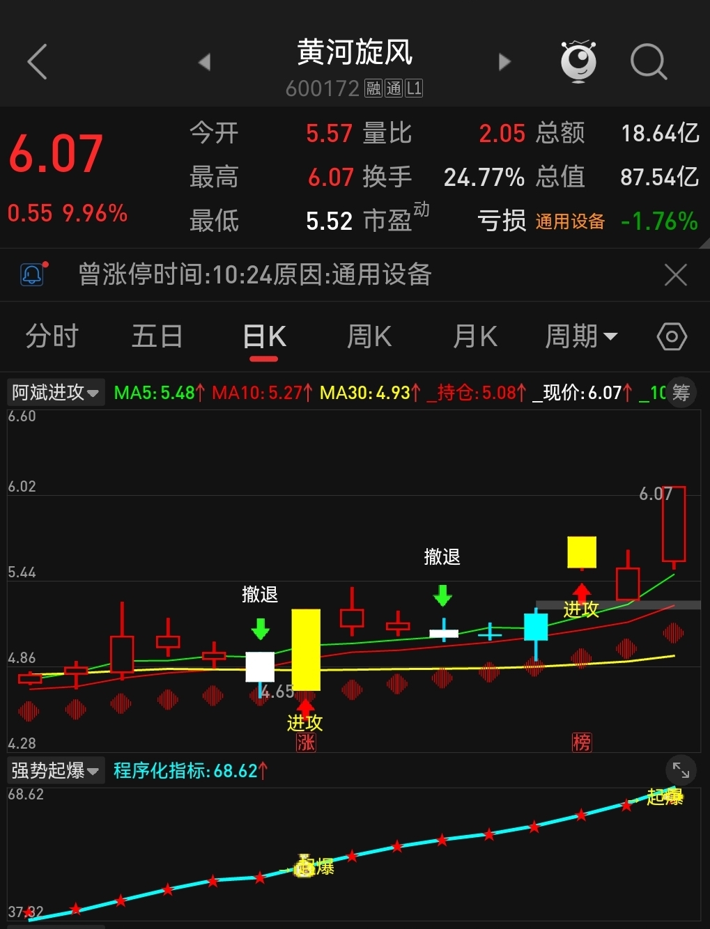 今早开盘还以为能见红,结果又被市场摆了一道。今天两次起爆行情截然相反,第一次跟上还能赚点,二次追进去直接被套牢。像黄河旋风、法尔胜这两支,要是早盘介入,现在10%的收益都到手了,偏偏我一碰二次起爆就翻车。尾盘看着环境实在差,干脆没敢开新仓。$高盟新材(SZ300200)$ $皖维高新(SH600063)$ $湖南黄金(SZ002155)$
