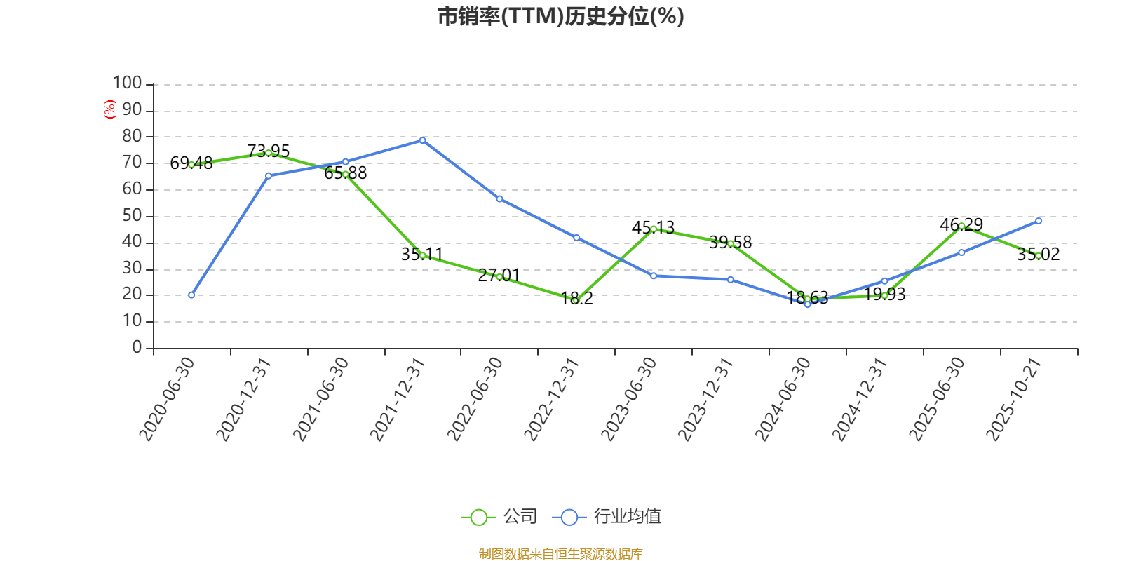 以10月21日收盘价计算,高盟新材目前市盈率(TTM)约为31.24倍,市净率(LF)约2.65倍,市销率(TTM)约3.53倍。