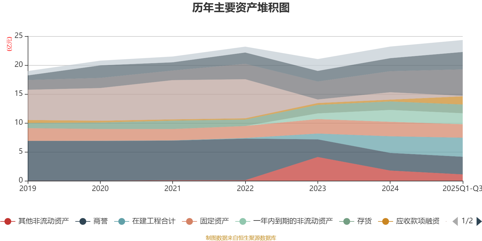 资产重大变化方面,截至2025年三季度末,公司交易性金融资产合计较上年末减少92.2%,占公司总资产比重下降5.12个百分点;应收款项融资较上年末增加363.82%,占公司总资产比重上升4.46个百分点;其他非流动资产较上年末减少37.81%,占公司总资产比重下降3.09个百分点;应收票据及应收账款较上年末增加24.93%,占公司总资产比重上升3.01个百分点。