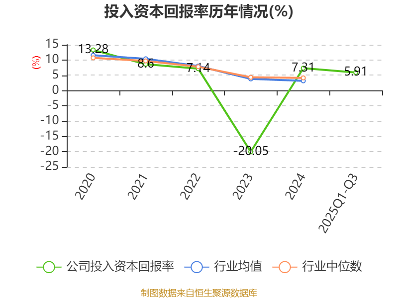 盈利能力方面, 2025年前三季度公司加权平均净资产收益率为7.1%,同比下降0.03个百分点。公司2025年前三季度投入资本回报率为5.91%,较上年同期上升0.13个百分点。