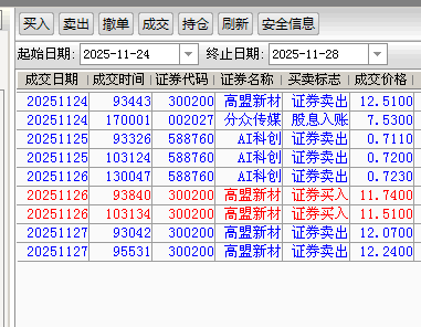 近日实盘操作如下:由于11月21日,高盟日线与周线都超买,月线瞬间超买,12.95元应是11月最高价了,周线超买后的调整不是三两天能结束的。短线波动大,把握机会做个短线。调整结束后依然有机会新高。