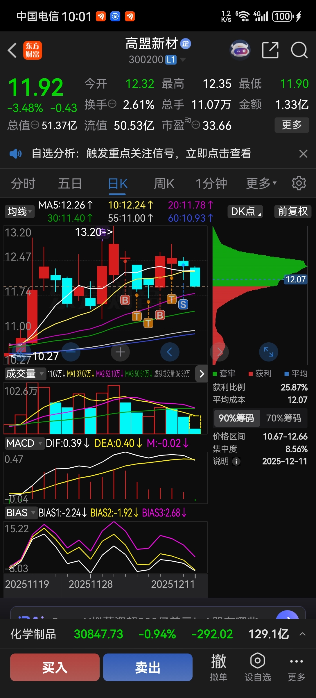$高盟新材(SZ300200)$ 昨天不割的话今天又特么埋我