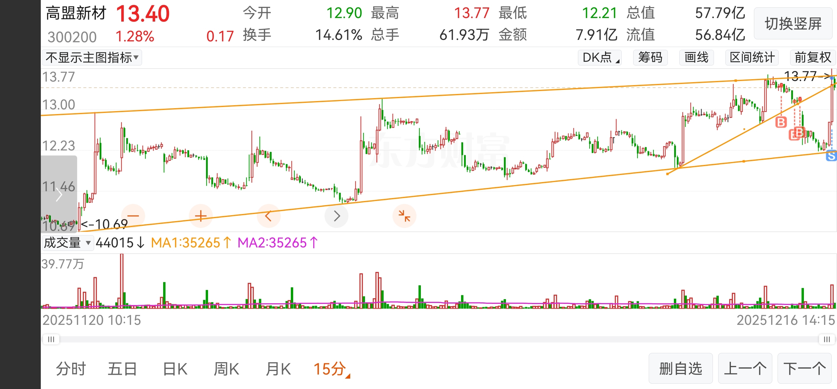 $高盟新材(SZ300200)$ 昨天草率了 ,还好早上画了个线,跑了算球了
