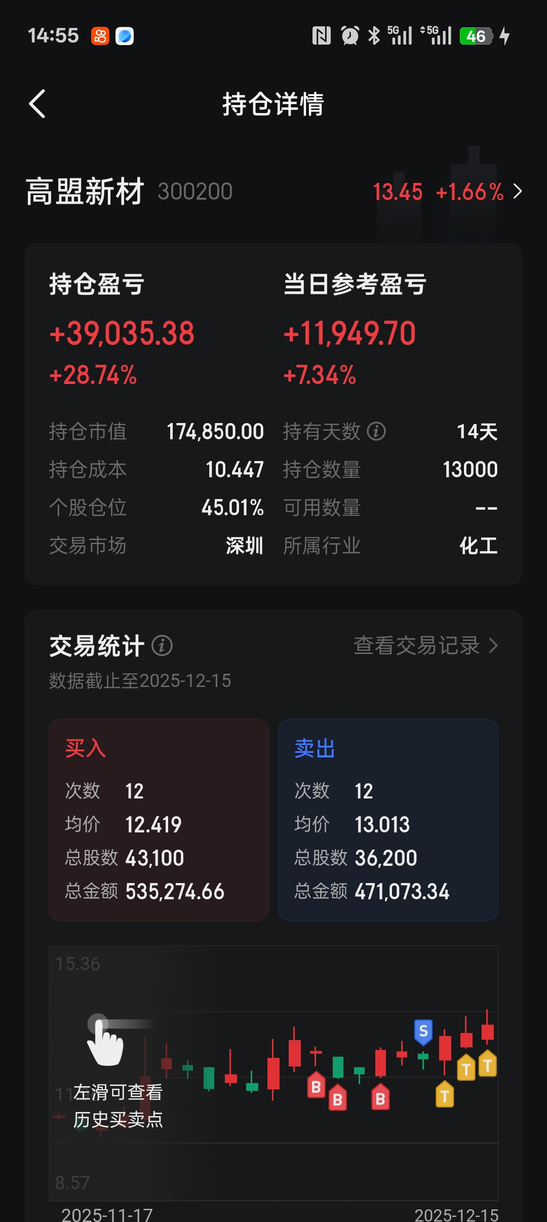 $高盟新材(SZ300200)$ 昨天13.62跑,,今天感谢机构倒车机会。。。哈哈哈哈