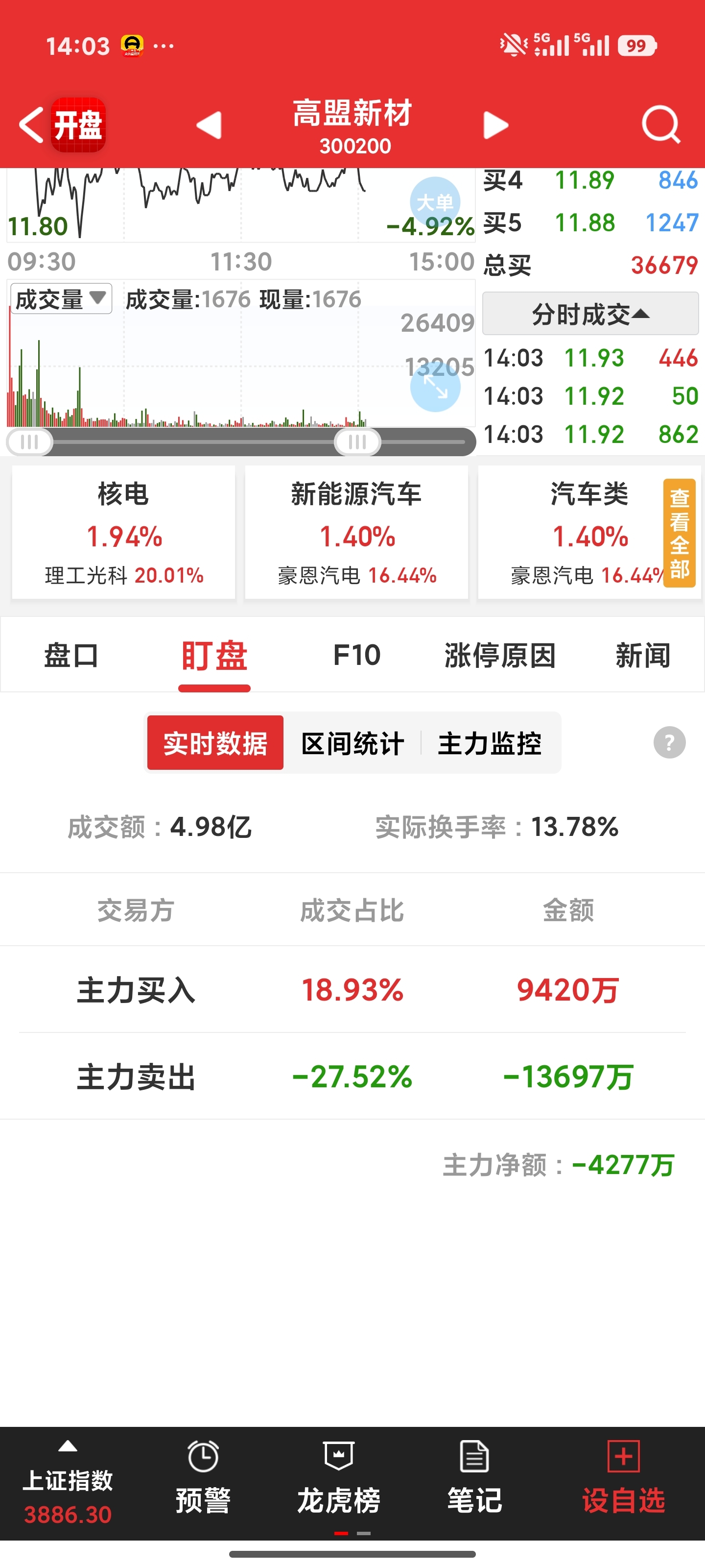 $高盟新材(SZ300200)$ 主力现在已经卖出4000多万了