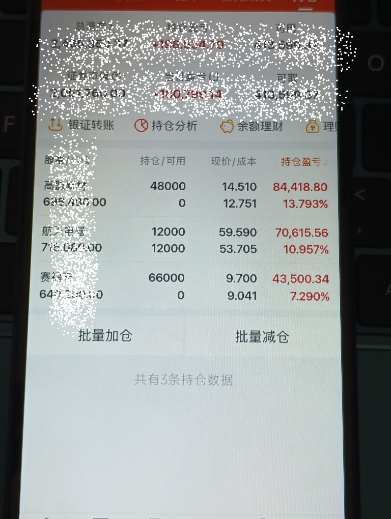 1月7号,持仓记录高盟新材航天电器赛福天