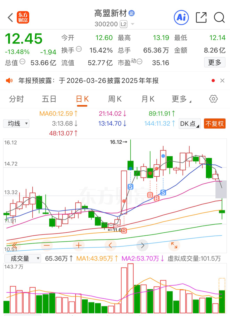 $高盟新材(SZ300200)$ 折腾了两次还算比较成功的!