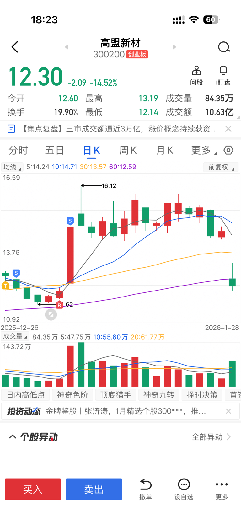 $高盟新材(SZ300200)$ 上次12.02买的,板上14.56出的,今天忍住没有建仓,大家说下什么价位可以建仓?