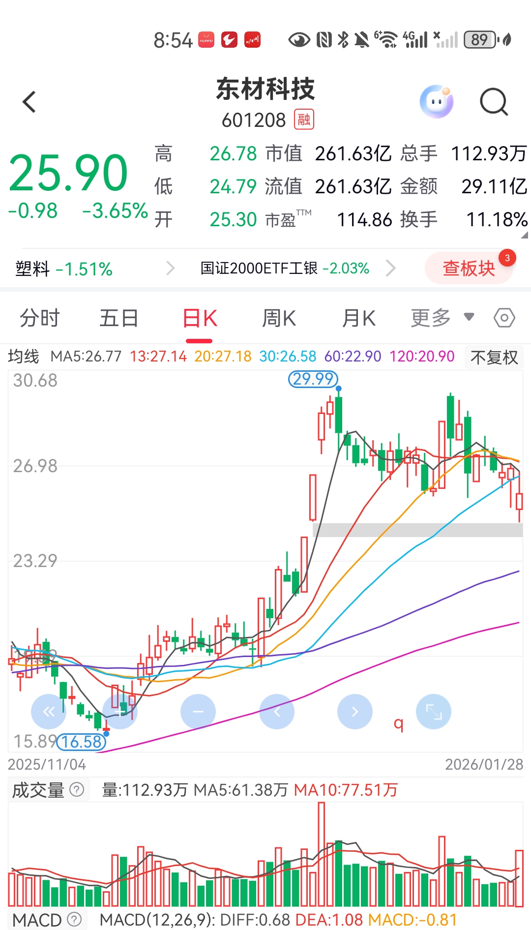 同样受牵连人家东材科技只跌一点点,早盘还一度接近翻红。
