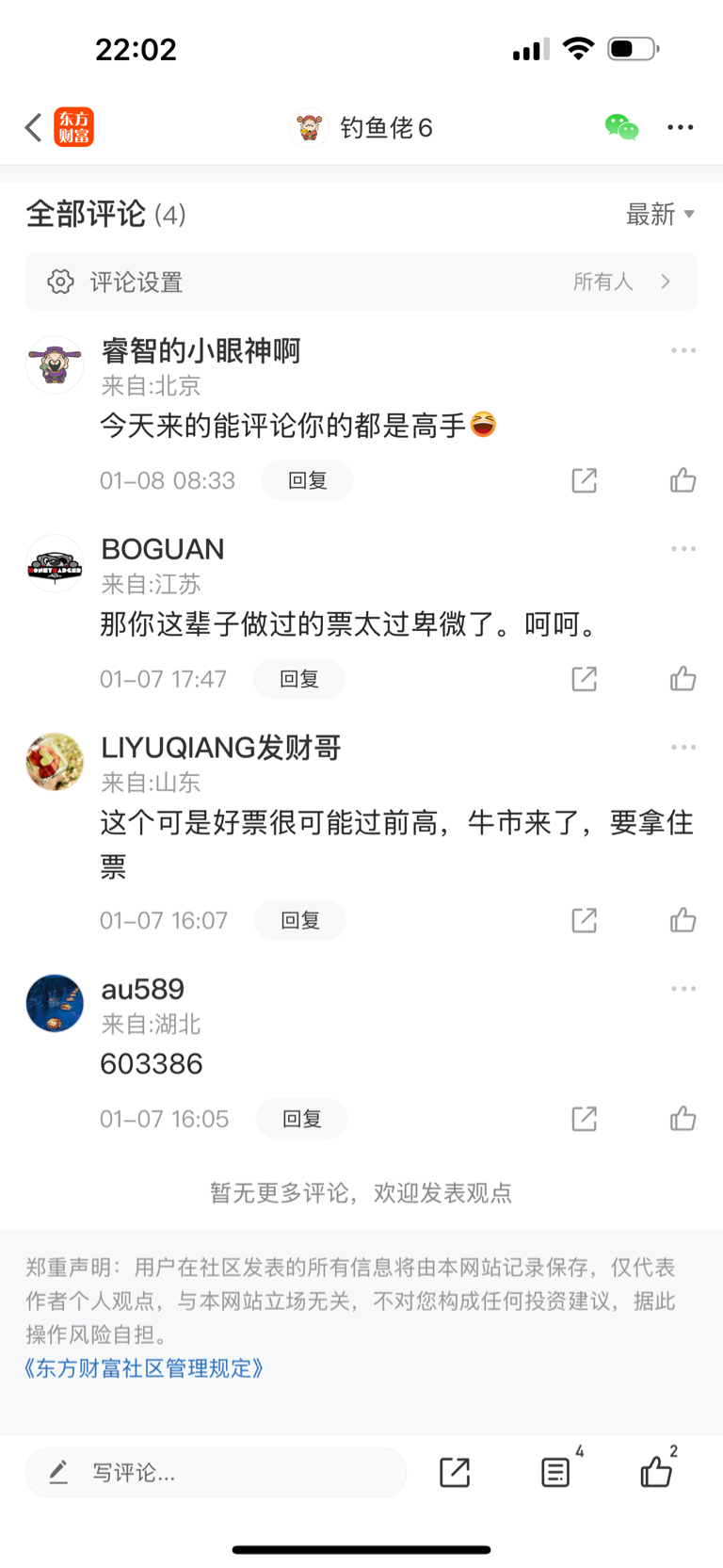 温馨提示: 1.根据《证券法》规定,禁止编造、传播虚假信息或者误导性信息,扰乱证券市场;2.用户在本社区发表的所有资料、言论等仅代表个人观点,与本网站立场无关,不对您构成任何投资建议。用户应基于自己的独立判断,自行决定证券投资并承担相应风险。《东方财富社区管理规定》