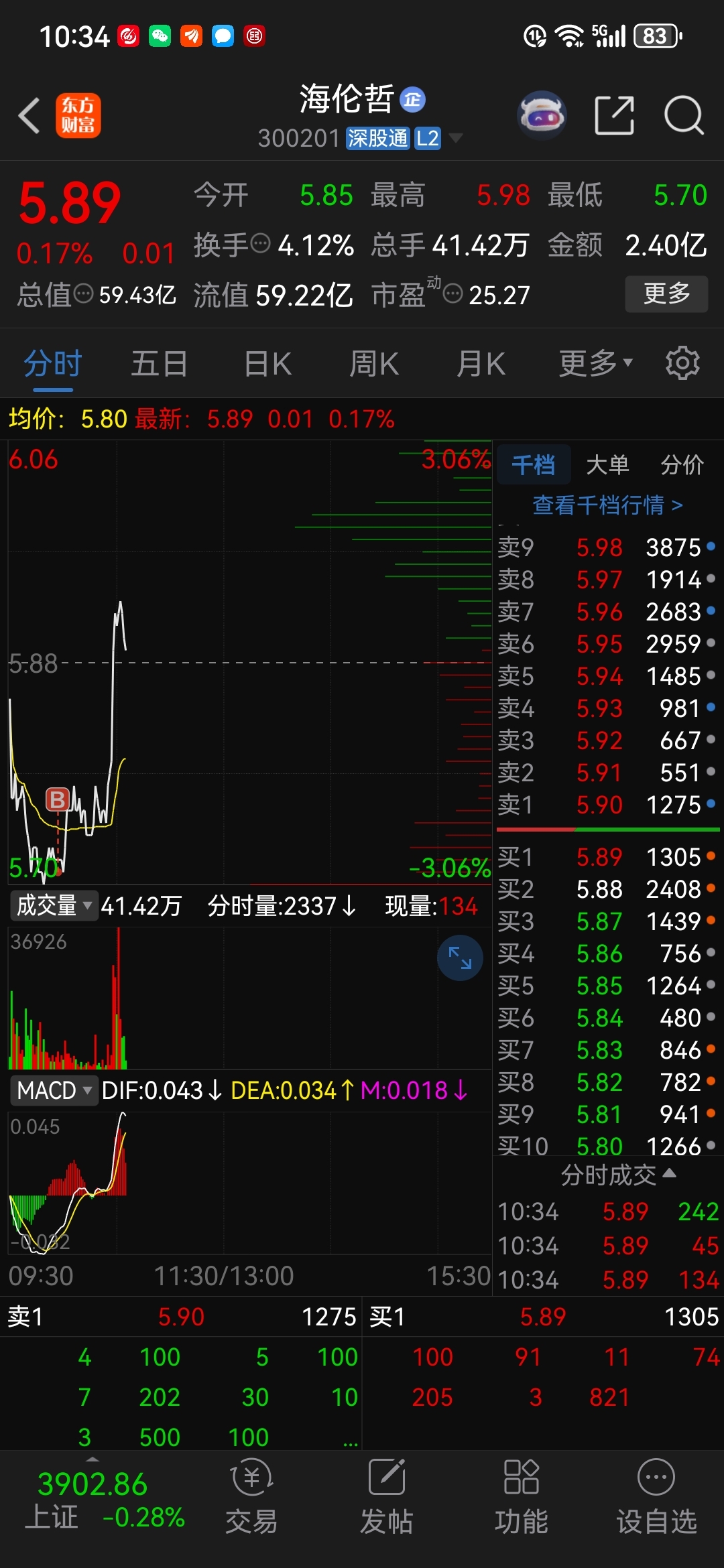 $海伦哲(SZ300201)$ 加仓了
