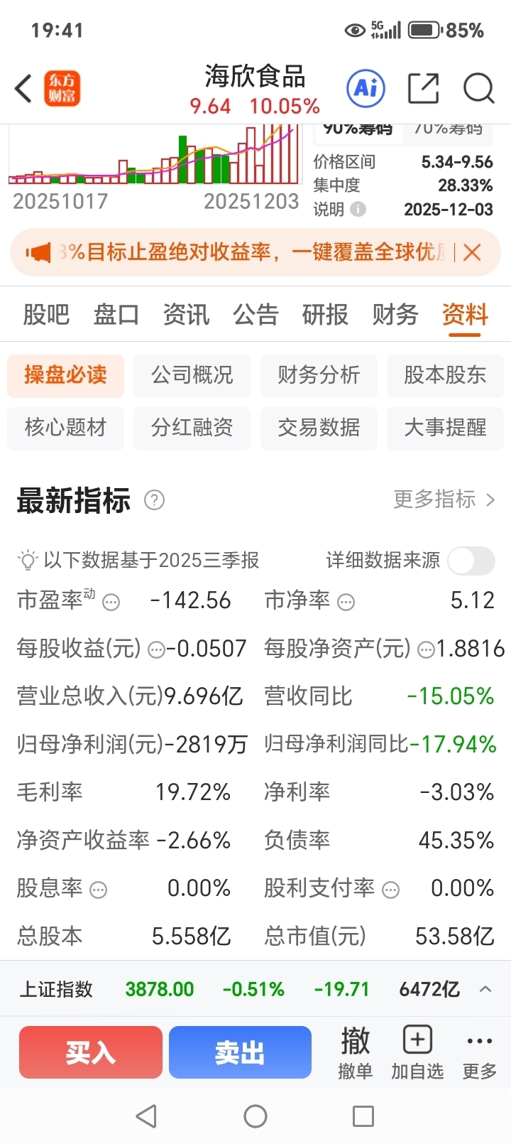 $海伦哲(SZ300201)$ 亏损的海欣食品6个涨停,越亏越涨。