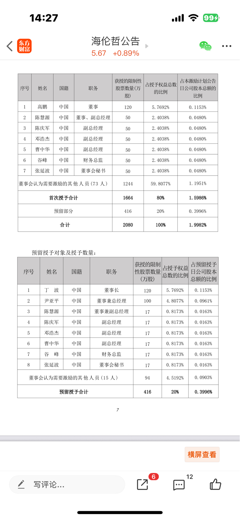 $海伦哲(SZ300201)$ 120万股1.9元、浮盈几百万、上台有多久?一个搞房地产的、曾经是广西的手下吧?