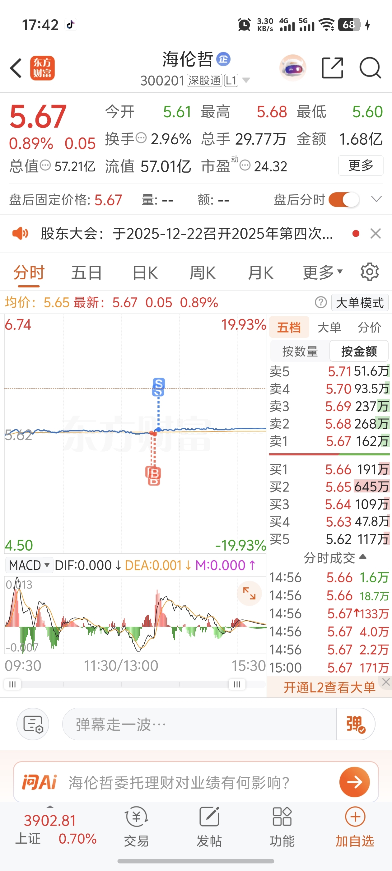 还好抛完了海伦哲去了思创医惠!主力太弱!